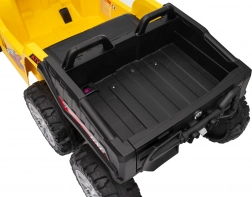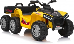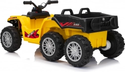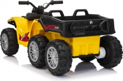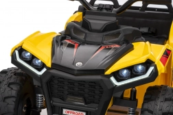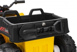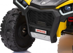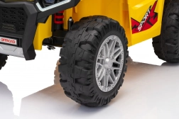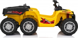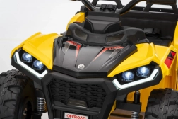 Quad żółty sportowy dziecięcy quad TX ATV jest wyposażony w wydajne silniki 4x35W i mocne akumulatory 12V7Ah, dzięki czemu zapewnia dzieciom niezapomniane przeżycia z jazdy. Model został zaprojektowany z pasy bezpieczeństwa i pilotem do sterowania na odległość, który pozwala rodzicom mieć kontrolę nad jazdą swoich dzieci.