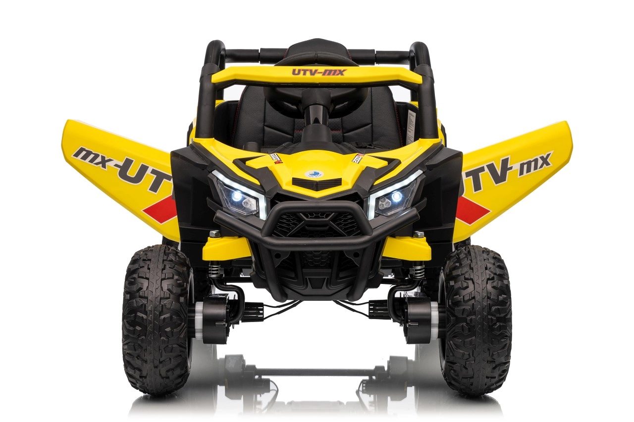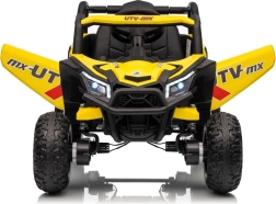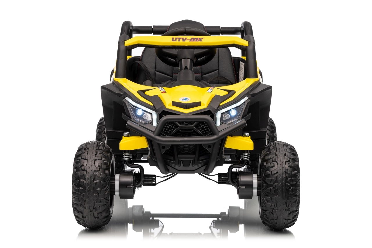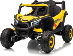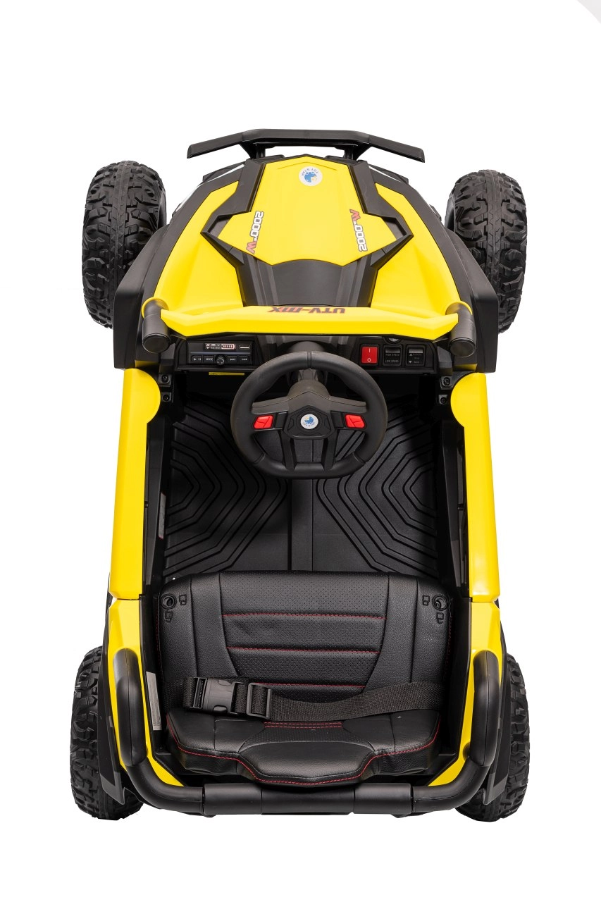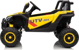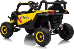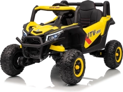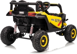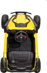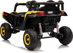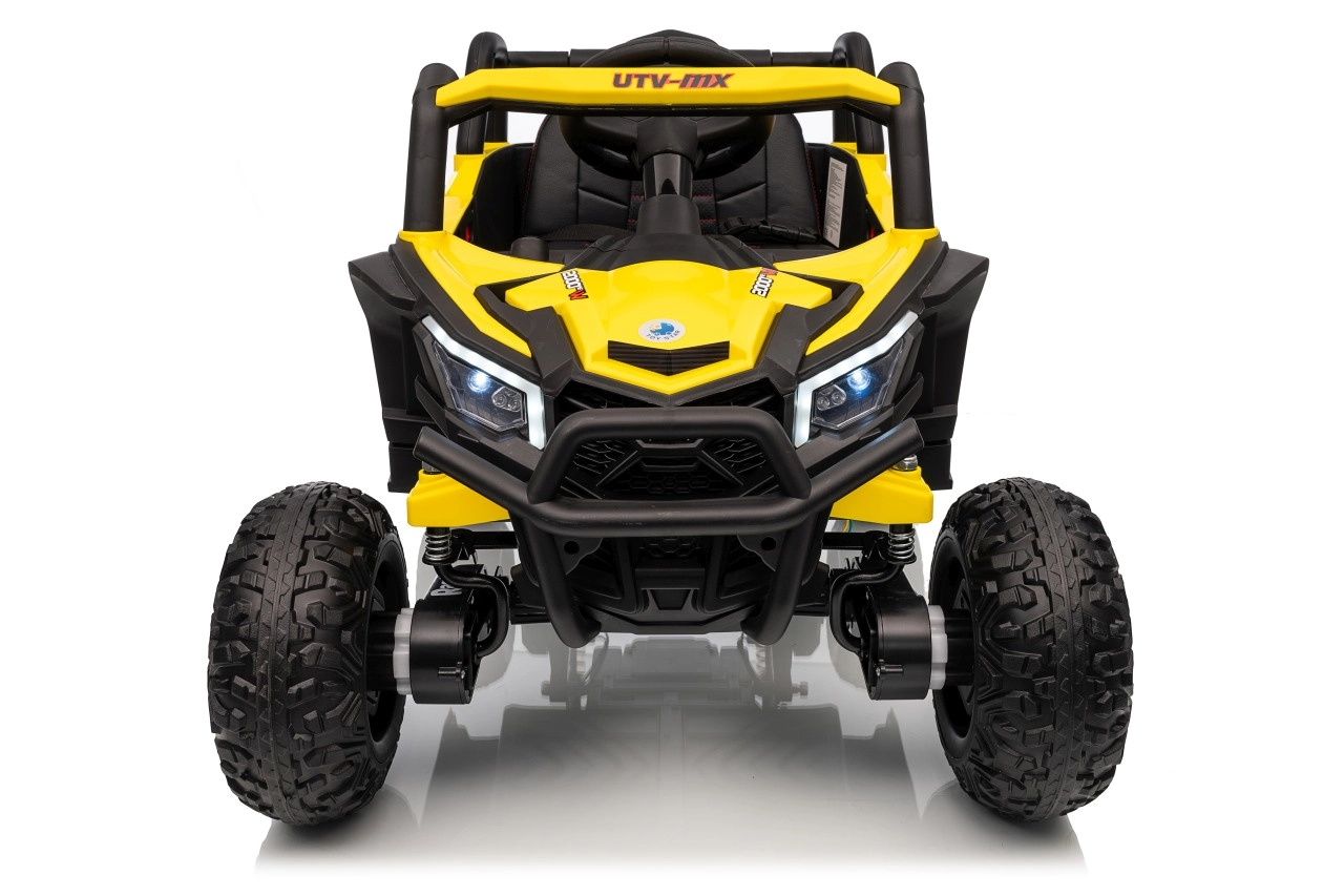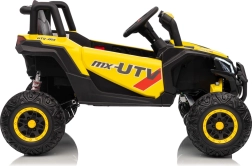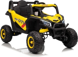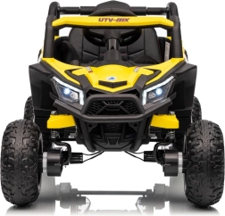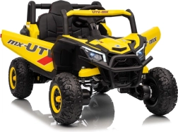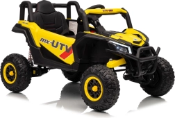 Ten żółty buggy Madman UTV-MX jest idealny do dziecięcej jazdy dzięki wydajnemu silnikowi o mocy 4x35W i akumulatorowi 12V10Ah, który pozwala na długie przejażdżki. Sterowanie jest proste dzięki pilotowi na częstotliwości 2,4 GHz i trzem poziomom prędkości.