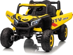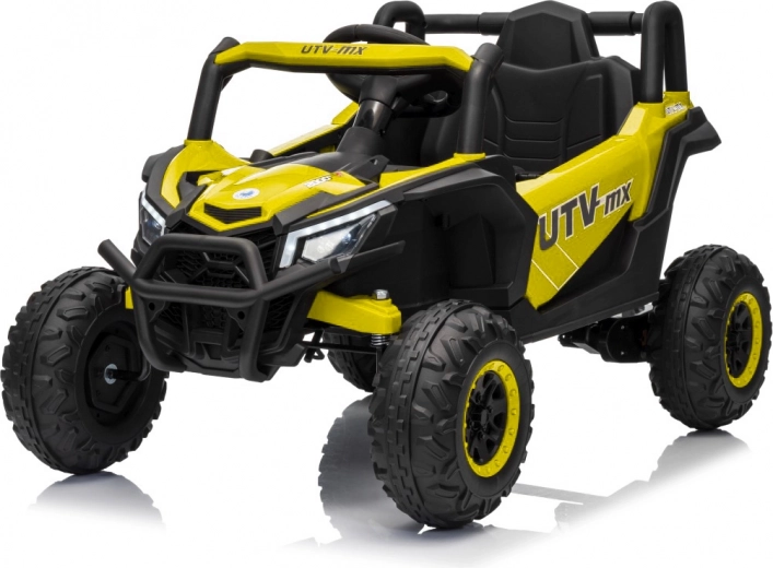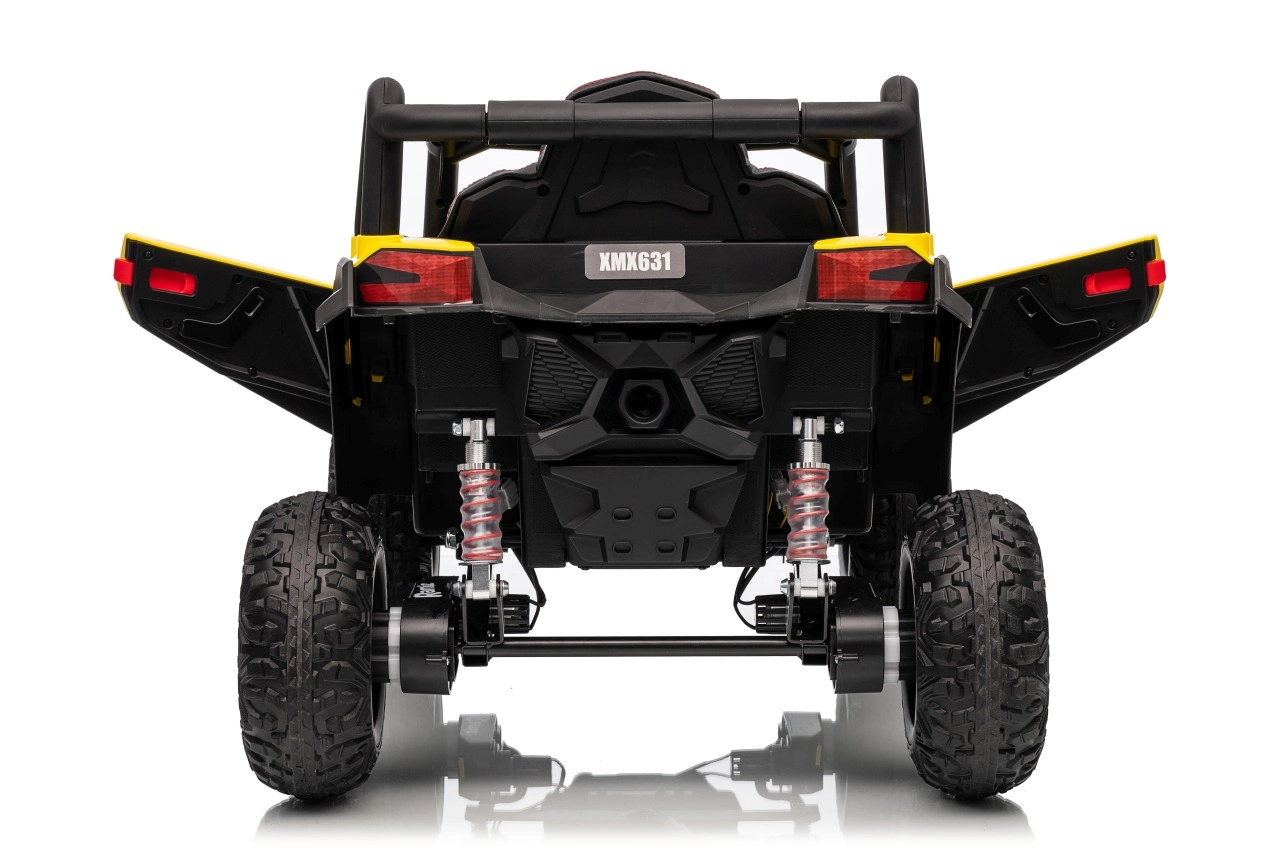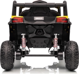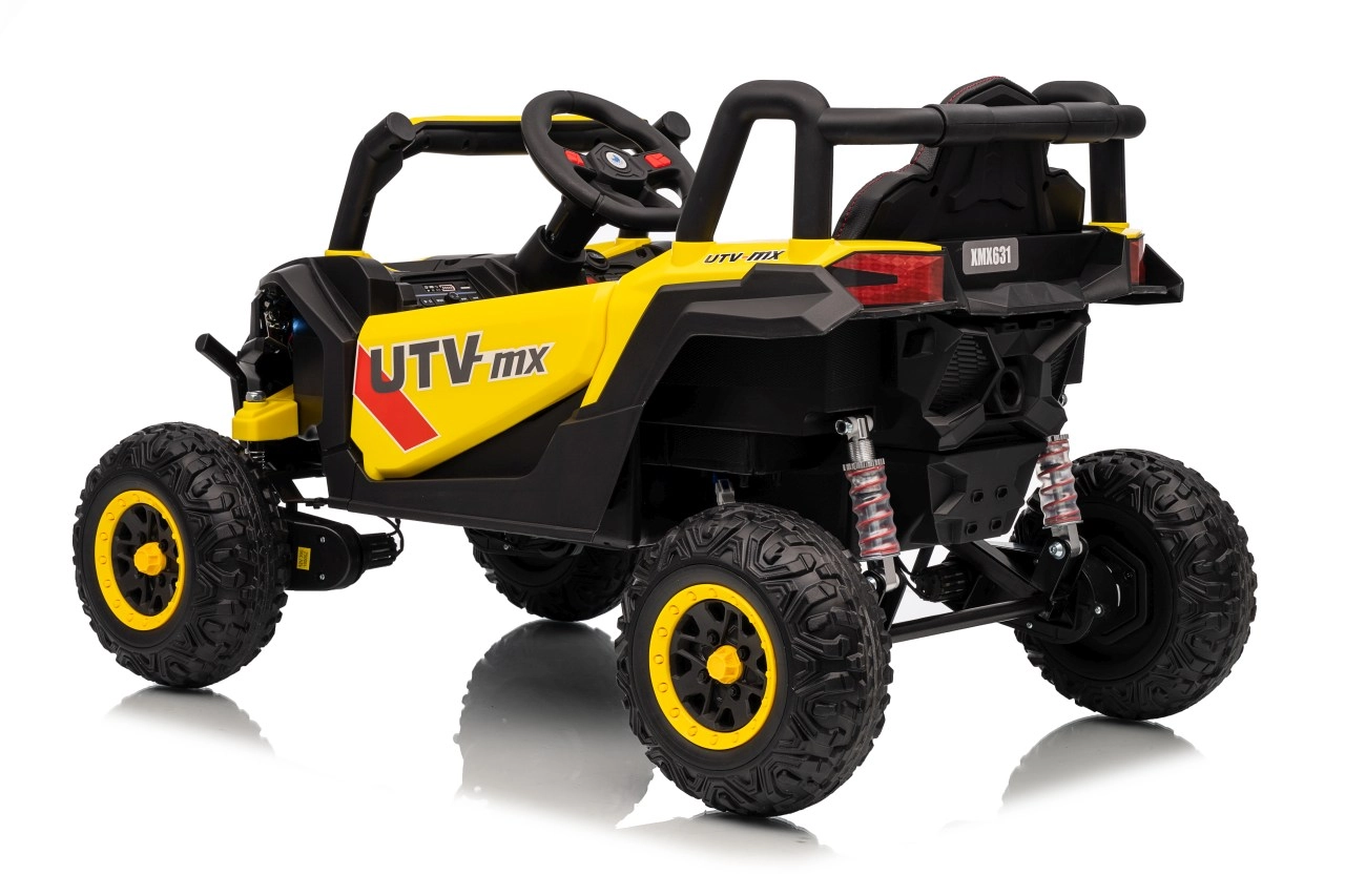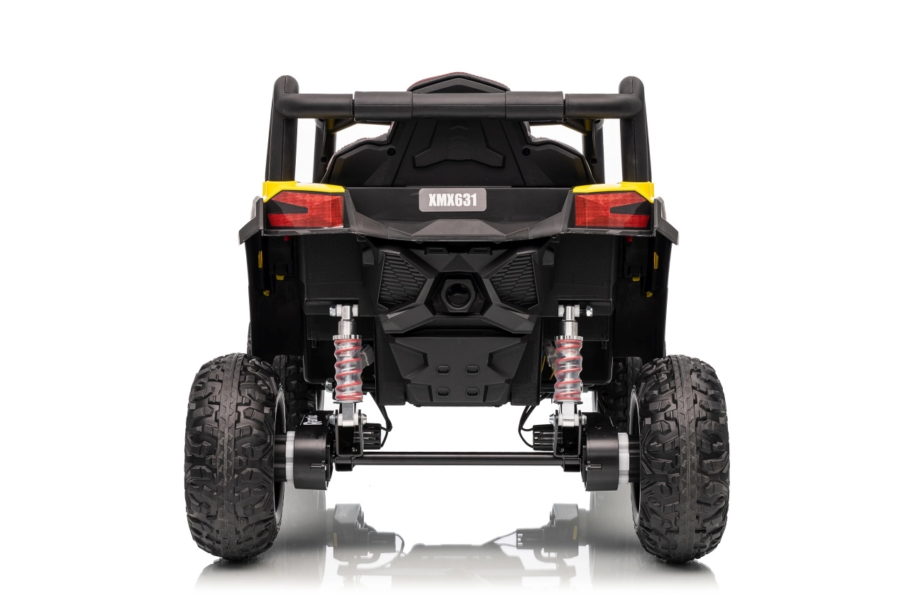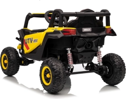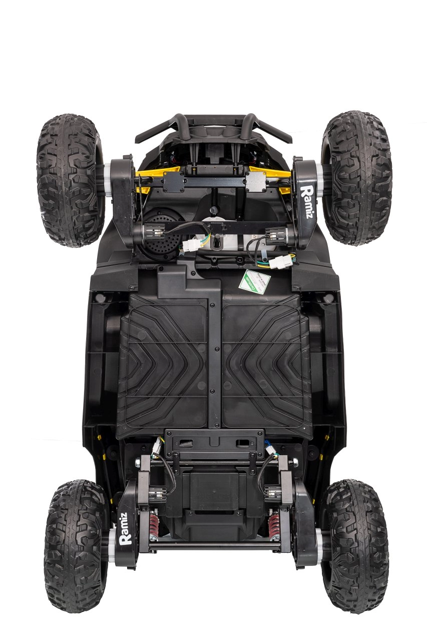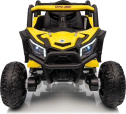 Ten żółty buggy Madman UTV-MX jest idealny do dziecięcej jazdy dzięki wydajnemu silnikowi o mocy 4x35W i akumulatorowi 12V10Ah, który pozwala na długie przejażdżki. Sterowanie jest proste dzięki pilotowi na częstotliwości 2,4 GHz i trzem poziomom prędkości.