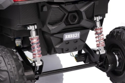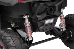 Dziecięcy samochód elektryczny Buggy Madman UTV-MX jest wyposażony w piankowe koła EVA o wymiarach 24x10 cm, co gwarantuje komfortową i płynną jazdę. Dzięki amortyzacji z przodu i z tyłu oraz dwóm prędkościom model ten oferuje stabilność także na nierównym terenie.