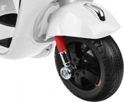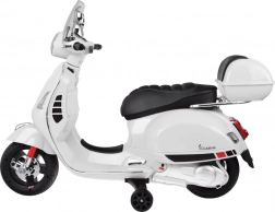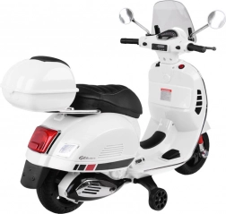 Stylowa dziecięca elektryczna hulajnoga Vespa GTS Super łączy klasyczny design, stabilną jazdę i mnóstwo zabawy. Dzięki mocnemu napędowi 12 V, kółkom pomocniczym oraz realistycznym detalom takim jak światła, lusterka i przednia osłona, jest idealna dla małych kierowców do ogrodu i parku.