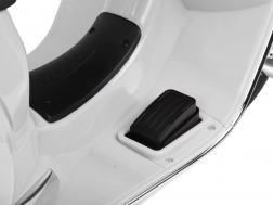 Przednia osłona, lusterka, reflektor i tylny kufer tworzą autentyczne wrażenia jak na prawdziwej Vespie.
