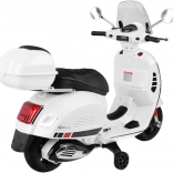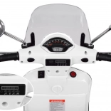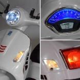 Przednia osłona, lusterka, reflektor i tylny kufer tworzą autentyczne wrażenia jak na prawdziwej Vespie.