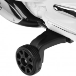 Realistyczne wyposażenie z przednim reflektorem, lusterkami wstecznymi, przednią osłoną i tylnym kufrem podkreśla autentyczne wrażenia z jazdy. Hulajnoga najlepiej sprawdza się na twardych nawierzchniach na podwórku lub w parku.