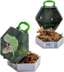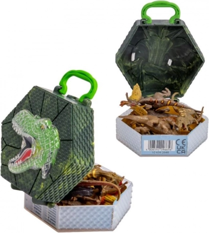 - Figurki dinozaurów w pudełku z uchwytem do noszenia