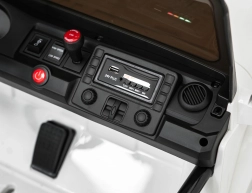 - MP3, Bluetooth, USB, AUX, przyciski dźwięków i klakson w kierownicy, wbudowane melodie
