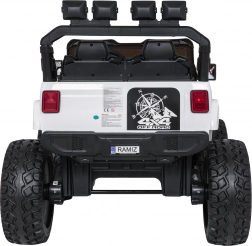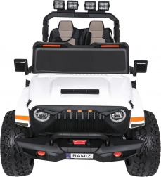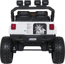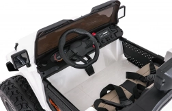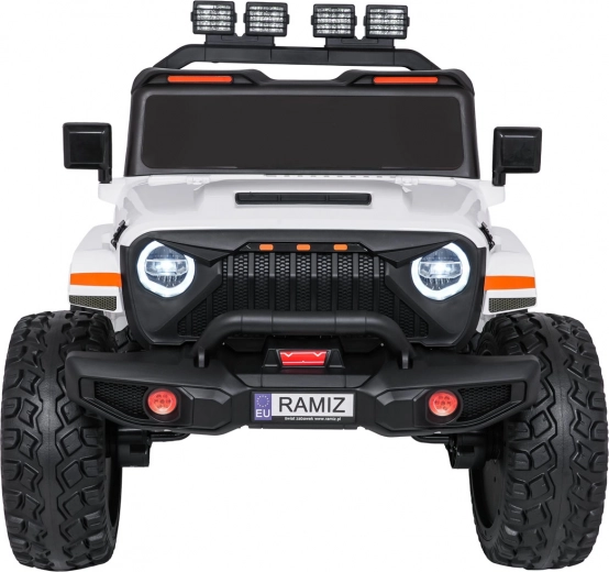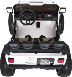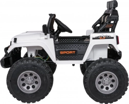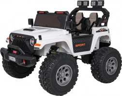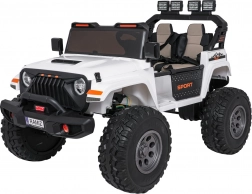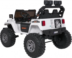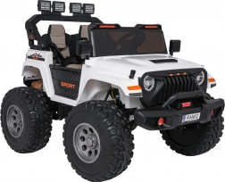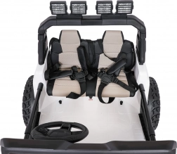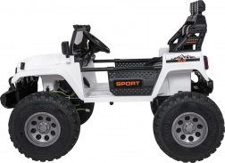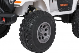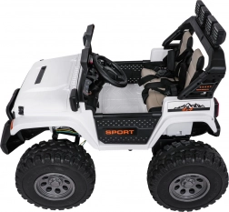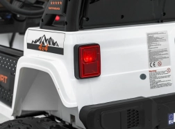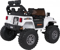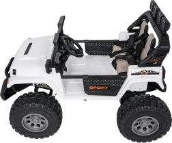 Extreme Sport 4x4 w białym kolorze to przestronny elektryczny samochodzik dla dzieci, łączący terenowy wygląd, duży prześwit 33 cm i komfort podwójnego siedziska z eko skóry. Dzięki czterem niezależnym silnikom (z przodu 2×200 W, z tyłu 2×280 W) oraz dwóm akumulatorom 12 V 7 Ah połączonym w 24 V serię radzi sobie także na wymagających nawierzchniach.