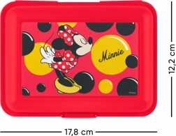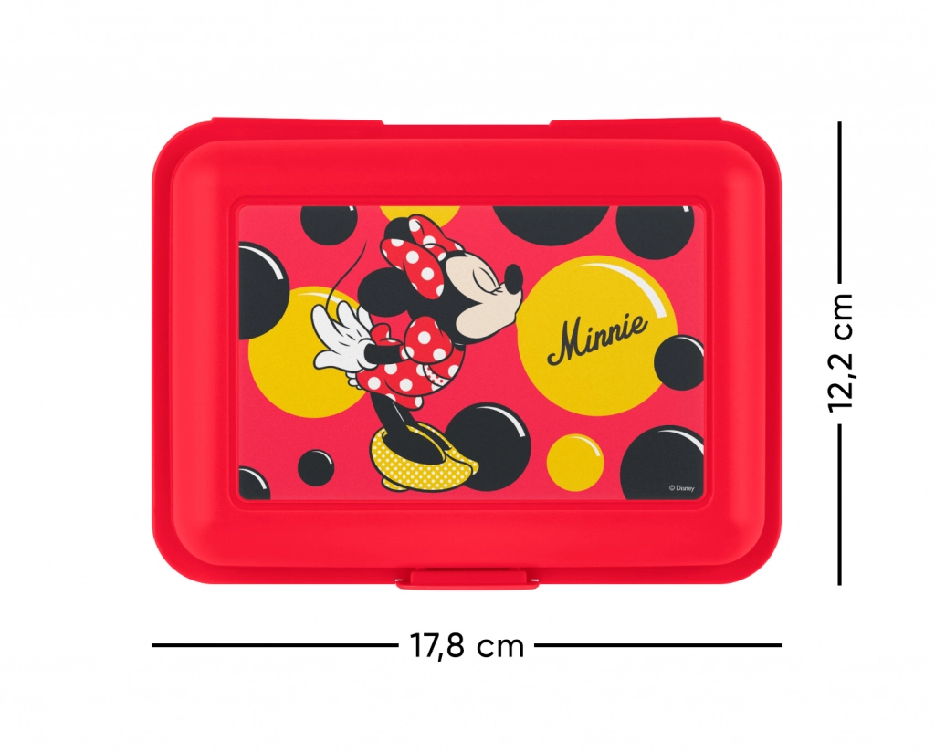 Schowaj swoją przekąskę stylowo w pudełku z kultową Minnie Mouse. To plastikowe pudełko śniadaniowe ma wygodne zamknięcie na jeden zatrzask, które zapewnia, że jedzenie pozostanie świeże i bezpiecznie przechowywane.