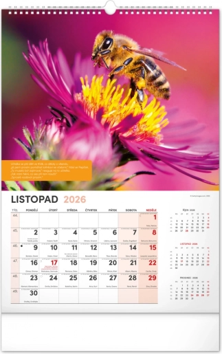 Ścienny kalendarz dla pszczelarzy z przysłowiami, mądrościami i zadaniami na każdy miesiąc. Zawiera polskie kalendarium.