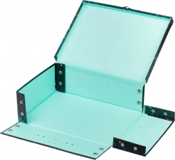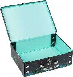 Praktyczny składany kufer idealny do zajęć plastycznych, zabawek lub drobiazgów. Dzięki napom można kufer łatwo złożyć i rozłożyć. Komfortowe noszenie dzięki metalowemu uchwytowi.