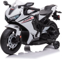 Dziecięcy elektryczny motocykl Honda CBR 1000RR został zaprojektowany dla małych kierowców, którzy chcą poczuć dreszczyk emocji jazdy motocyklem. Ten model w eleganckim białym kolorze naśladuje prawdziwy motocykl marki Honda i jest wyposażony w realistyczne elementy, takie jak wydech, lusterka oraz starannie wykonane koła.