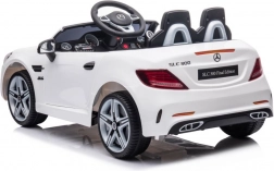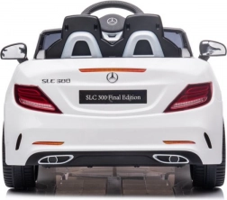Dziecięcy elektryczny Mercedes-Benz SLC 300 oferuje realistyczny design z dopracowanymi detalami, takimi jak reflektory i lusterka boczne, zapewniając autentyczne wrażenia z jazdy.