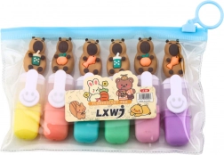 Zawiera sześć zakreślaczy w różnych pastelowych odcieniach, umieszczonych w przezroczystym etui na zamek. Kompaktowe wymiary etui (16 x 10 x 2 cm) umożliwiają łatwe przenoszenie w plecaku, torebce lub piórniku.