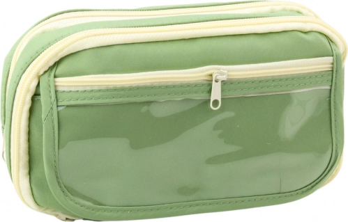 Zielony szkolny piórnik dwukomorowy z kieszeniami