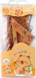 Zestaw przyborów geometrycznych z motywem kapibary jest idealny do nauki szkolnej, prac plastycznych i codziennego rysowania. Każdy element zdobią przyjazne ilustracje kapibary, a kolorystyka nadaje całemu zestawowi wyjątkowy i estetyczny wygląd.