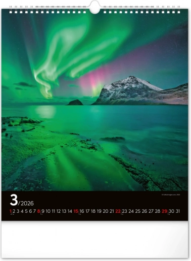 Doświadcz magii zorzy polarnej przez cały rok dzięki naszemu kalendarzowi ściennemu na rok 2026. Dwanaście starannie wybranych zdjęć zabierze Cię w świat unikalnych zjawisk przyrodniczych.
