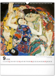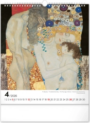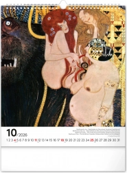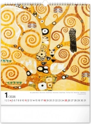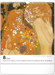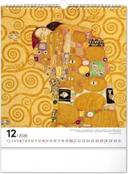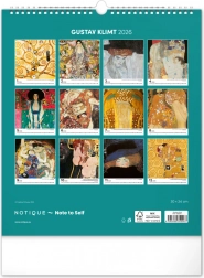 Elegancki kalendarz ścienny z dziełami Gustava Klimta na rok 2026, który stanie się wspaniałym dodatkiem do Twojego wnętrza. Kalendarz zawiera piękne reprodukcje obrazów wydrukowane na wysokiej jakości papierze, które ukazują piękno sztuki tego ikonicznego malarza.