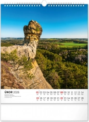 Odkryj urok czeskiego krajobrazu każdego miesiąca z tym unikalnym kalendarzem ściennym. Wędrówki po czeskim krajobrazie z roku 2026 to: