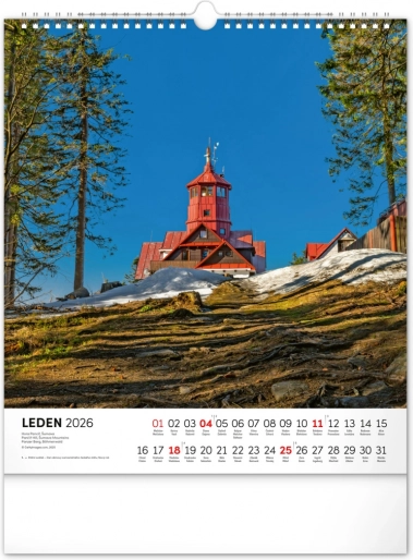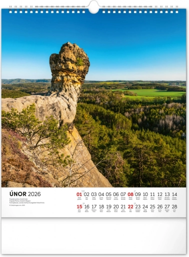 Ten kalendarz jest idealny dla tych, którzy lubią przyrodę, historię i piękne miejsca naszej krainy. Przynieś trochę uroku czeskiego krajobrazu do domu lub biura.