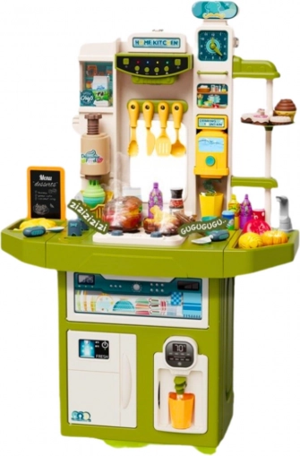 Kuchnia-zabawka jest wyposażona w nowoczesne interaktywne funkcje: efekt pary, realistyczne dźwięki gotowania, kolorowe światła LED oraz muzykę uruchamianą panelem sterowania.