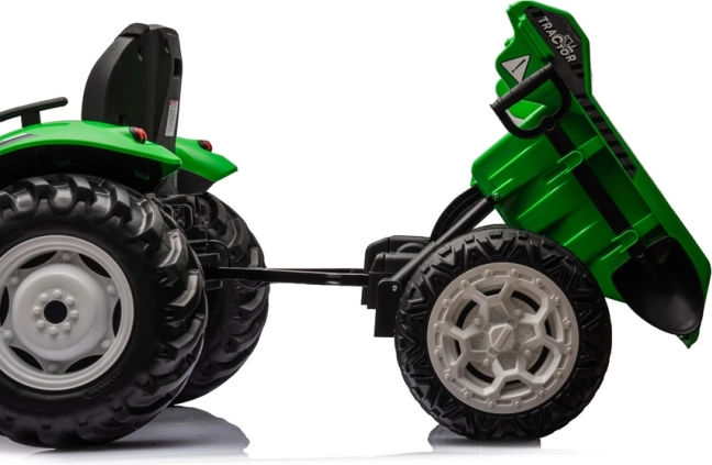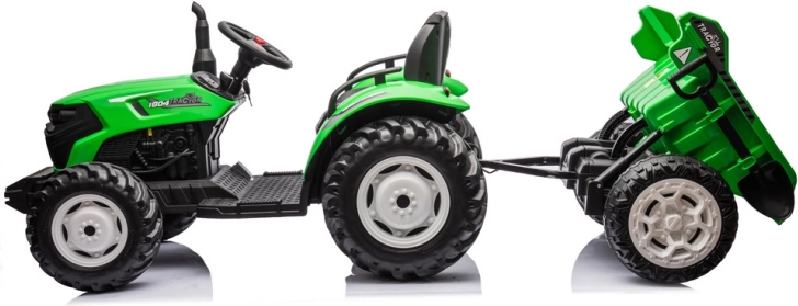 Traktor akumulatorowy 24V w jasnozielonym kolorze dla dzieci z przyczepą. Doskonała zabawa na łonie natury!
