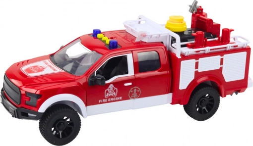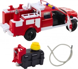 Wóz strażacki wykonany jest z wysokiej jakości plastiku i zawiera wiele funkcjonalnych elementów. Na dachu pojazdu znajduje się zdejmowany zbiornik z pompką i elastycznym wężem, który umożliwia zabawę w gaszenie pożarów poprzez spryskiwanie wodą. Dziecko może wyobrażać sobie, że jest prawdziwym strażakiem i pomaga „gasić” wymyślone pożary w domu, w ogrodzie lub na placu zabaw.
