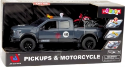 Pick-up z motocyklem został zaprojektowany dla najmłodszych miłośników motoryzacji i oferuje funkcje wzbogacające zabawę oraz pobudzające wyobraźnię. Otwierane drzwi i tylna klapa ułatwiają załadunek motocykla, co pozwala tworzyć różne scenariusze zabawy – od misji ratunkowych po wyścigi terenowe.