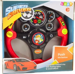 Dzięki funkcji imitacji dźwięków klaksonu, kierunkowskazów czy jazdy oraz podświetlanym wskaźnikom dziecko ma możliwość interaktywnej i realistycznej zabawy. Kierownica zawiera 7 funkcjonalnych przycisków, z których każdy aktywuje inne efekty – od dźwięków silnika, przez światła, po melodie i wibracje. Przycisk ON/OFF w formie stacyjki pozwala dziecku rozpocząć zabawę tak, jak w prawdziwym samochodzie. Podświetlenie imitacji wskaźników i realistyczne wibracje wzmacniają poczucie przebywania w kabinie auta. Zabawka doskonale wspiera rozwój zmysłów, koordynacji wzrokowo-ruchowej oraz wyobraźni.