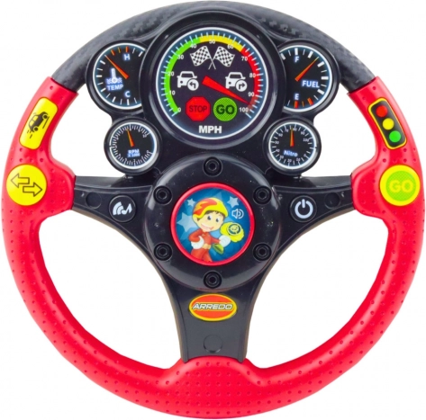 Interaktywna kierownica dla dzieci z efektami dźwięku, światła i wibracji – czerwona