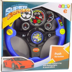 Interaktywna kierownica dla dzieci zawiera 7 funkcjonalnych przycisków, z których każdy uruchamia inne efekty – od dźwięków silnika, przez światła, po melodie i wibracje. Przycisk ON/OFF w kształcie kluczyka pozwala dziecku rozpocząć zabawę jak w prawdziwym samochodzie. Podświetlenie imitacji wskaźników oraz realistyczne wibracje potęgują wrażenie przebywania w kabinie auta.