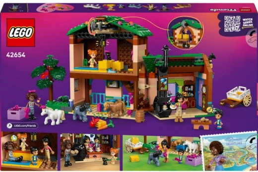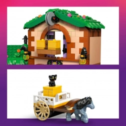 Odkryj urok wsi z przyjaciółmi z miasteczka Heartlake. Zestaw łączy zabawę ze zwierzętami i szczegółowe otoczenie: stajnię z poddaszem do spania, przytulny salonik, zewnętrzne oświetlenie w kształcie koni oraz duży dziedziniec do opieki nad kucykami. Funkcyjna wciągarka do siana łatwo przenosi bele na strych lub na wóz, dzięki czemu dzieci mogą wymyślać realistyczne zadania na farmie.