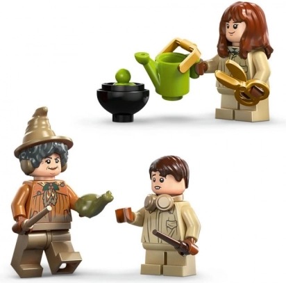 Zestaw zawiera trzy ulubione postacie – Neville’a, Hermionę i profesor Sprout – wraz z akcesoriami, takimi jak słuchawki przeciw krzykowi mandragor, konewka, nożyczki, kociołek i inne. Dzięki przemyślanym detalom i licznym dodatkom zestaw zapewnia długie godziny kreatywnego opowiadania historii i fantastycznej zabawy w odgrywanie ról.