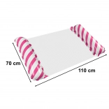 Dmuchany materac z wygodną konstrukcją pozwala siedzieć lub leżeć na wodzie z spokojem. Design z różowo-białymi paskami jest łatwo widoczny, co dodaje materacowi atrakcyjności. Po spuszczeniu powietrza jest łatwy do przechowywania i odpowiedni dla wszystkich podróżników.