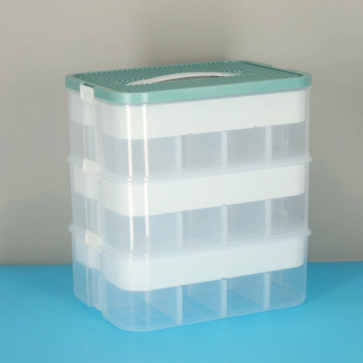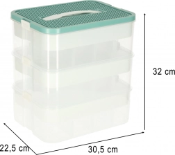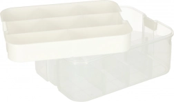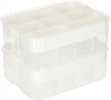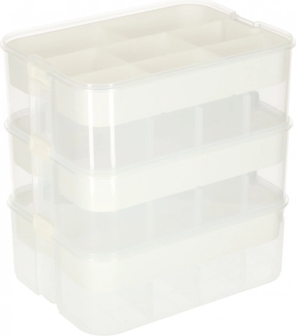 Organizer oferuje elastyczne możliwości przechowywania dzięki trzem poziomom, co pozwala utrzymać wszystkie Twoje rzeczy w porządku i przejrzyście. Wykonany jest z wysokiej jakości plastiku, co gwarantuje długą żywotność i trwałość.