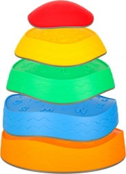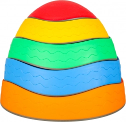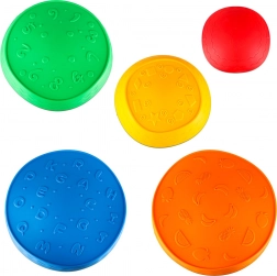 Zestaw zawiera pięć różnokolorowych kamieni: czerwony z ornamentami, żółty z kształtami, pomarańczowy z motywami owoców, niebieski z literkami i zielony z liczbami. Każdy kamień wykonany jest z wytrzymałego poliuretanu, co gwarantuje odporność i długą żywotność.