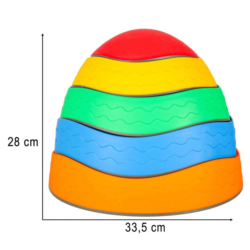 Kamienie można układać jeden na drugim, aby oszczędzić miejsce, a podczas zabawy tworzyć różne trasy dostosowane do wieku i umiejętności dzieci.