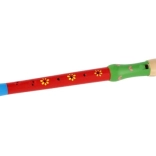 Ta malowana drewniana fletnia o długości 33 cm jest idealna dla początkujących muzyków. Wykonana z lekkiego i wytrzymałego drewna, zapewnia wygodną grę i długą żywotność instrumentu. Wesoły design i kolorowe wzory zachwycą każde dziecko i wniosą radość także podczas ćwiczeń.