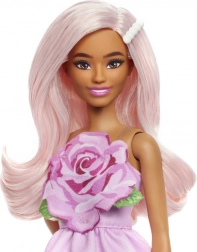 Odkryj magię mody z lalką Barbie Fashionistas w delikatnej różowej sukience z dużą aplikacją róży. Dzięki różnorodnym stylom, ruchomym kończynom i zdejmowanym akcesoriom inspiruje dzieci do twórczej zabawy i wyrażania siebie. Stylowy różowy kolor włosów z perłową spinką oraz dopasowane różowe sandałki czynią z tej Barbie idealny prezent dla małych miłośników mody.