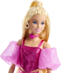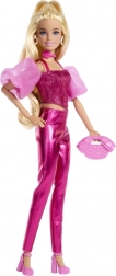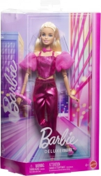 Odkryj świat mody z lalką Barbie Deluxe modelka w błyszczącym różowym stroju. Pomysłowy gorset z bufiastymi rękawami, lśniące spodnie i dopasowane akcesoria tworzą perfekcyjnie skomponowany wygląd, który przyciąga wzrok od pierwszego spojrzenia. Lalka ma długie blond włosy odpowiednie do czesania i stylizacji, a dzięki stawom łatwo przyjmuje pozy z wybiegu.