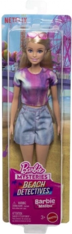 Lalka Barbie „Malibu” wnosi świeży letni styl i mnóstwo możliwości zabawy. Dzięki batikowanemu crop topowi, dżinsowym szortkom i stylowym okularom jest gotowa na każde wyzwanie – od plażowych poszukiwań po miejskie przygody. W pełni ruchome kończyny umożliwiają naturalne pozy i zabawne scenki.