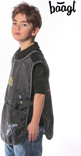 Stylowy dziecięcy fartuszek Pixel Space jest idealny na zajęcia plastyczne, prace techniczne i inne kółka zainteresowań. Ma praktyczne kieszenie i jest wykonany z zmywalnego materiału.