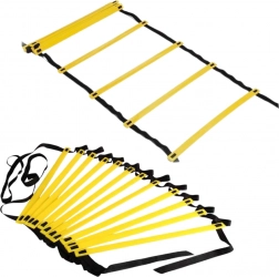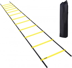 Drabinka treningowa wykonana jest z wytrzymałego PVC oraz polietylenowych taśm, dzięki czemu jest odporna na intensywne użytkowanie zarówno w halach, jak i na zewnątrz. Drabinka ma 12 regulowanych szczebli, które pozwalają dostosować rozstaw do konkretnych ćwiczeń i poziomu użytkownika.