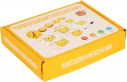 Ten zestaw edukacyjny to doskonała pomoc dydaktyczna do nauki czasu, wspierająca praktyczną i atrakcyjną naukę odczytywania godzin. Zestaw zawiera duży zegar z ruchomymi wskazówkami, karty edukacyjne z ilustracjami oraz suchościeralny pisak.