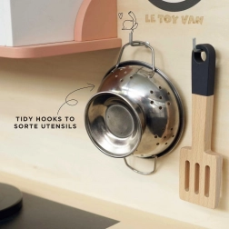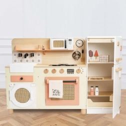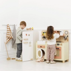 Podaruj dzieciom własne kulinarne królestwo z tą stylową drewnianą kuchnią LE TOY VAN. Oferuje realistyczne funkcje oraz bogate wyposażenie na długie godziny twórczej zabawy: zlew, piekarnik, pralkę, mikrofalówkę, obrotowe kurki i działające pokrętła. Wykonana z drewna z certyfikatem FSC i malowana nietoksycznymi farbami na bazie wody – bezpieczne i zrównoważone rozwiązanie do każdego pokoju dziecięcego.