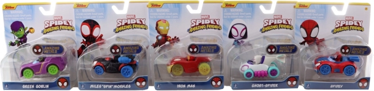 Ciesz się zabawą z metalowym autkiem Spidey i przyjaciele! Idealne dla małych fanów akcji i przygód.