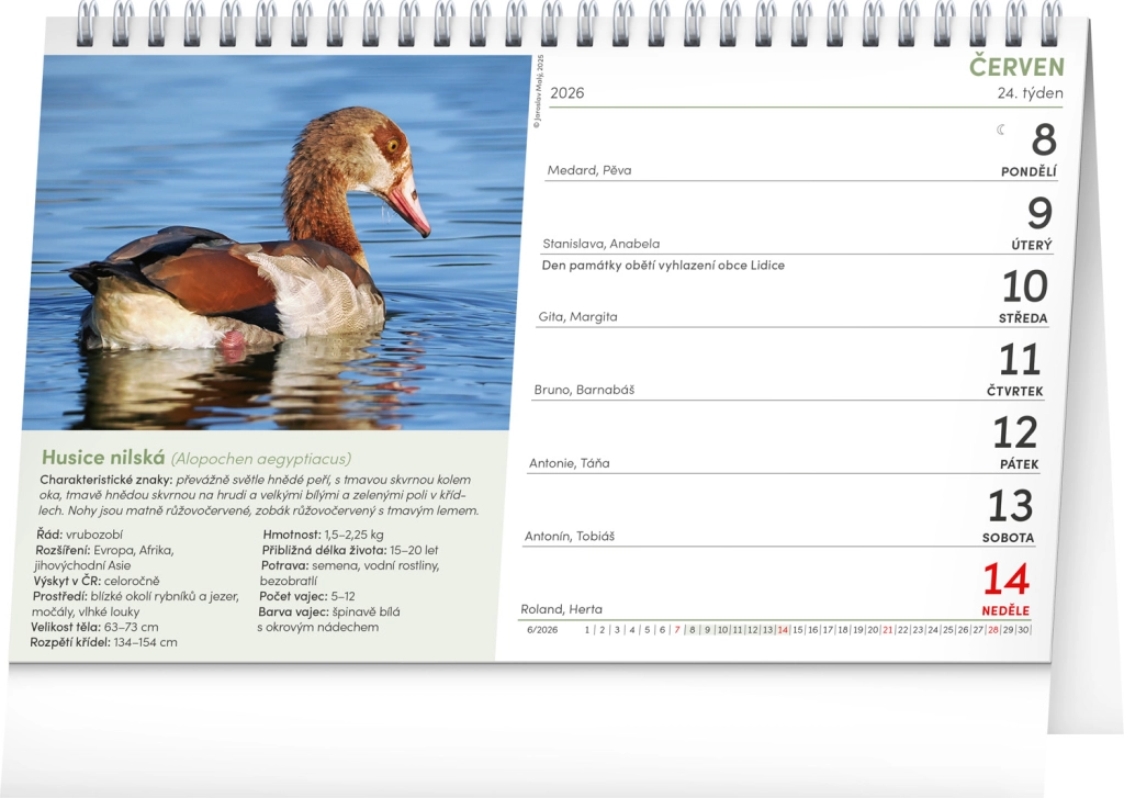 Kalendarz biurkowy Ptaki Czech to doskonały wybór dla każdego miłośnika przyrody i ptaków. Oferuje zachwycające fotografie oraz informacje o znanych i mniej znanych gatunkach ptaków w Republice Czeskiej.