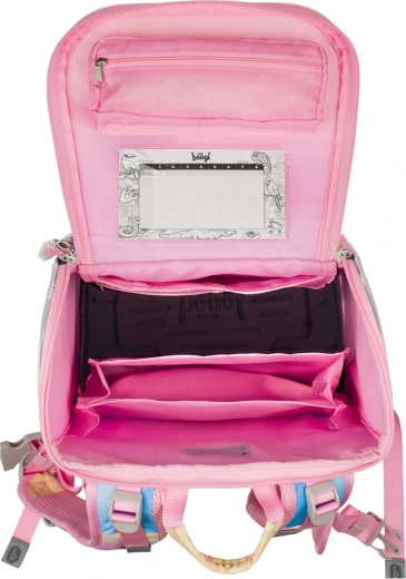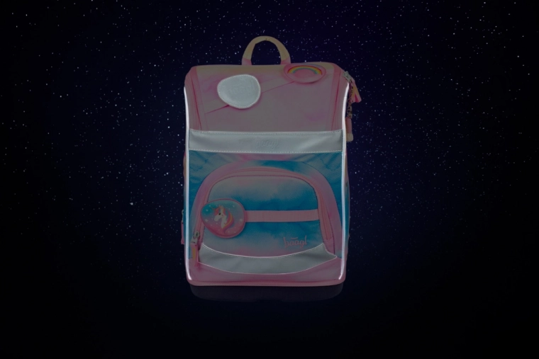 Tornister zawiera odpinany pas biodrowy, przejrzysty wewnętrzny organizer oraz specjalną termo-kieszeń na drugie śniadanie dla wygodnego przenoszenia. Dzięki unikalnemu systemowi wymiennych przypinek dzieci mogą tworzyć własny wygląd tornistra zgodnie ze swoim nastrojem i zainteresowaniami.