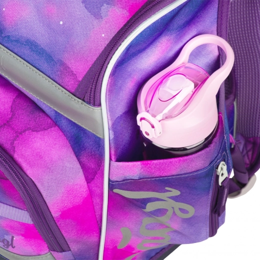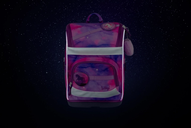 Kreatywność dziecka może się wyrazić dzięki unikatowemu systemowi wymiennych przypinek na tornistrze. Bezpieczeństwo zapewniają elementy odblaskowe oraz niezawodne zamki YKK. Tornister ma sztywne dno i wagę 1 150 g, dzięki czemu zachowuje kształt i stoi stabilnie.