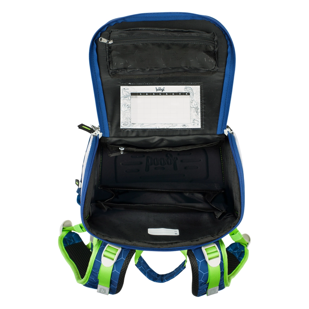 Ten zestaw szkolnych przyborów z motywem piłki nożnej od Baagl obejmuje tornister, piórnik, worek, fartuszek i portfel. Lekki i ergonomiczny tornister Zippy Plus ze wzmocnioną konstrukcją i regulowanymi szelkami jest idealny dla małych uczniów.