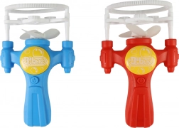 Wystarczy wlać płyn do baniek do dołączonej miseczki, zanurzyć głowicę z kółkami i nacisnąć przycisk zasilania. Wbudowany wentylator natychmiast rozkręca kółka i wypuszcza strumień delikatnych baniek, idealnych do ogrodu, parku lub dziecięcego przyjęcia.